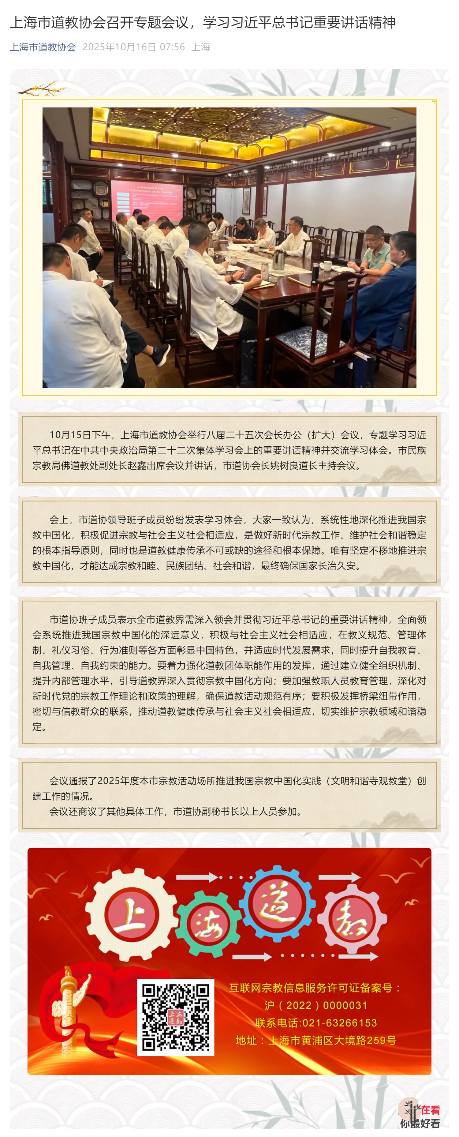 上海市道教协会召开专题会议,学习习近平总书记重要讲话精神